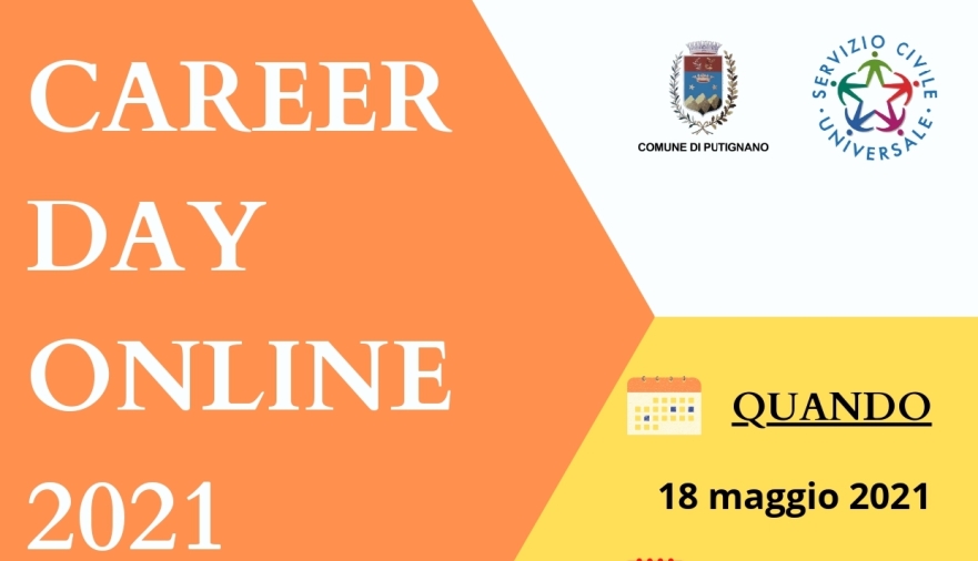 Il Career Day è rivolto a tutti coloro che sono in cerca di occupazione, dai più giovani che si affacciano per la prima volta al mondo del lavoro a chi è più grande ed è in cerca di nuove opportunità lavorative. Una giornata fra seminari e incontri virtuali fra cittadini, aziende, enti di formazione e associazioni del territorio. Hanno confermato la propria adesione gli enti Quasar, Spegea, Università LUM, Umana, le aziende Icam, Master, Joker Imballaggi, Sachim, PDT Laboratori Cosmetici, Biscottificio tarallificio Farinella, Tecnocasa, le associazioni Coopera, Nero e non solo, L’antica Arte del Trullaro.