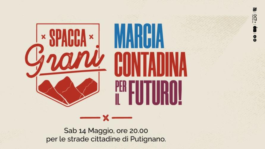 Il 14 maggio a Putignano, a partire dalle ore 20.00 andrà in scena Spaccagrani – Marcia contadina per il futuro, uno spettacolo itinerante ideato da Officina Chiodo Fisso, Consorzio I MAKE, e ÒB STUDIO con la collaborazione della Compagnia Eleina D e Teatro dei Leggeri e il patrocinio del Comune di Putignano che attinge allo storico evento dei tumulti contadini di Putignano del 1902, di cui quest’anno ricorrono i 120 anni. L’evento di protesta contro i dazi sulle farine vide una folla di 5.000 putignanesi dare sfogo alla propria indignazione e rabbia nei confronti della ristretta classe dei grandi proprietari terrieri e dei ricchi borghesi che ingrassavano sul duro lavoro e sulla miseria dei lavoratori della terra e la conseguente morte di una giovane innocente Margherita Pusterla.