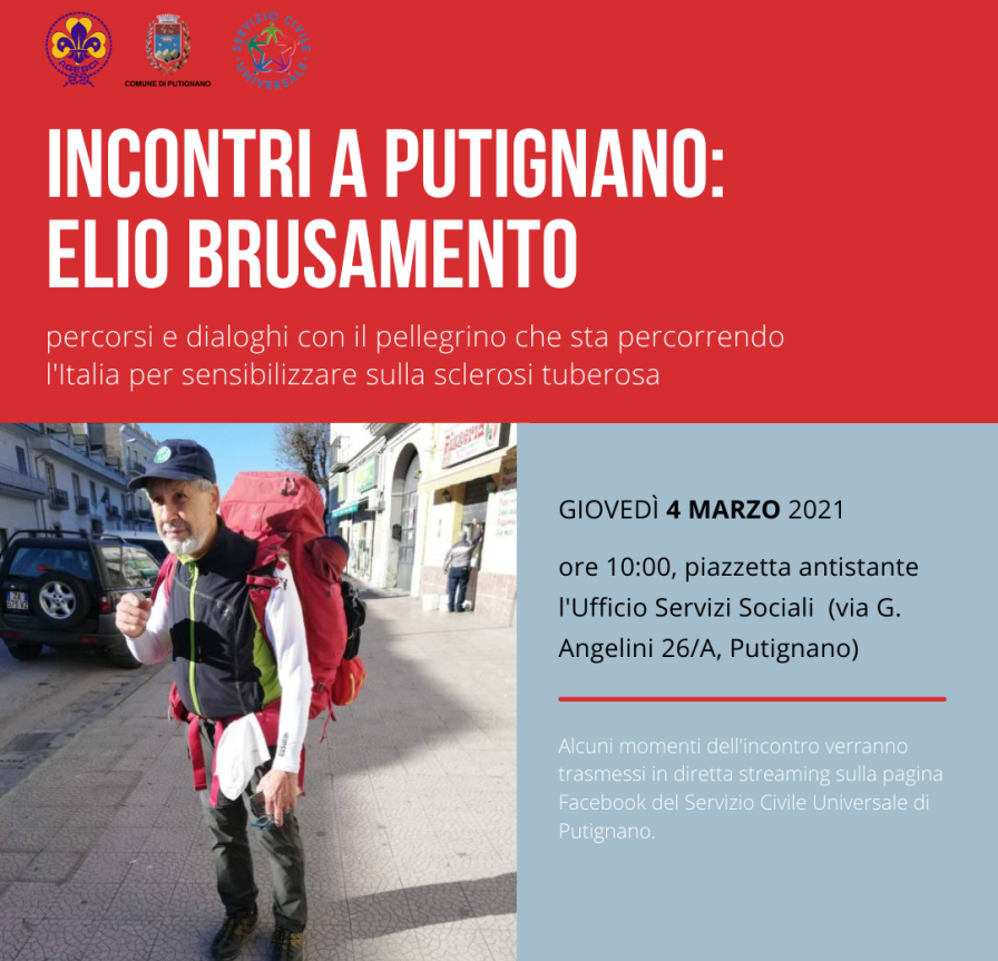 68 anni, radiologo in pensione, alpino e atleta, da due anni percorre a piedi l’Italia per informare e sostenere la lotta alla sclerosi tuberosa. È Elio Brusamento, il pellegrino che giovedì 4 marzo farà tappa a Putignano.