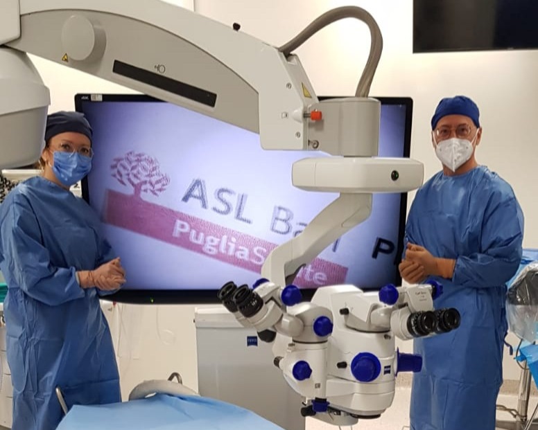 Lavoro più semplice per l’équipe oculistica e risultati ancora più soddisfacenti per il paziente: «Il microscopio – rimarca Colonna – dispone di un sistema per il posizionamento guidato di lenti intraoculari. In determinate situazioni possiamo inserire delle speciali lenti toriche per correggere un vizio refrattivo accentuato, ad esempio un astigmatismo superiore alle tre diottrie. Ed è possibile posizionare, in casi particolari, cristallini artificiali per correggere parzialmente anche la presbiopia. Si tratta di operazioni – sottolinea ancora – eseguite in one day surgery, per cui è sufficiente una sola giornata – dall’ingresso in reparto all’operazione e successiva dimissione – per tornare a casa e riprendere le incombenze quotidiane. Con un vantaggio importante in termini di qualità della vista e della vita del paziente, che anche a 70 anni può tornare a correre o andare in bici senza più avere bisogno degli occhiali “da lontano”». Il microscopio 3D è soprattutto il miglior alleato dei chirurghi oftalmici: «Assieme alla mano del chirurgo – sottolinea il dr. Colonna – il microscopio 3D è fondamentale perché sta permettendo ad alcuni giovani colleghi di apprendere e sperimentare una nuova metodica con un approccio completamente diverso, reso possibile dall’evoluzione della tecnologia e attualmente ancora poco diffuso: qui a Putignano, invece, è già realtà».