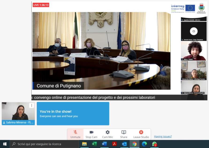 Lo scorso 16 febbraio ha avuto luogo il Convegno trasmesso in diretta streaming organizzato dal Comune di Putignano e mirato alla presentazione del progetto “JUMP – Joint Urban Measures for creative Players”, finanziato dal Programma di Cooperazione Transfrontaliera INTERREG V/A Grecia-Italia 2014-2020 e finalizzato alla valorizzazione di un patrimonio urbano dismesso, come quello dei macelli, attraverso laboratori di creatività nelle sue diverse forme di espressione artistica (musica, teatro, pittura, artigianato, ecc.).