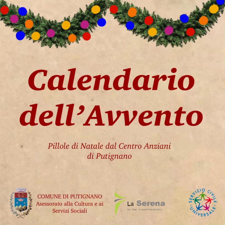 Dall’inaspettata scoperta di un calendario dell’Avvento appartenuto al Principe Romanazzi Carducci, nasce l’idea del Calendario dell’Avvento online del Museo Civico di Putignano. A partire da oggi, martedì 1° dicembre, per 25 giorni sulla pagina Facebook e Instagram del Museo Civico Principe Guglielmo Romanazzi Carducci di Santo Mauro sarà ripercorsa la storia delle tradizioni natalizie di Putignano.