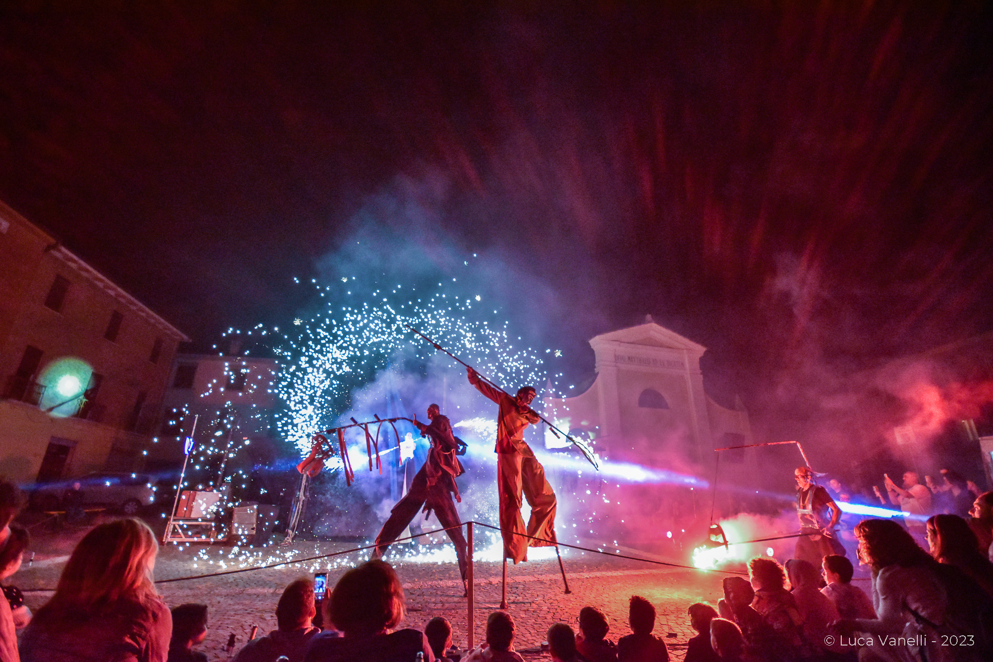 Lo spettacolo di piazza “The Tempest” è un grande spettacolo che utilizza trampoli, fuoco, effetti di luce, danza aerea. Uno spettacolo liberamente tratto dall’opera di W. Shakespeare dove le discipline del teatro e del cirque nouveau si fondono per dare vita ad uno spettacolo unico nel suo genere. Dalla danza aerea all’acrobatica su trampolo passando per la commedia dell’arte con importanti maschere in cuoio realizzate artigianalmente e decorate con maestria, il tutto arricchito da imponenti copricapi, elaborati costumi, l’utilizzo di strumenti visual e musiche imponenti attentamente selezionate per emozionare e coinvolgere il pubblico dall’inizio alla fine.