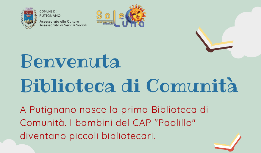«La nostra biblioteca riceve ogni anno tante proposte di donazione – commenta Rossana Delfine, assessora alla Cultura di Putignano – ma spesso non possiamo accettarle per la presenza dei testi già nel nostro patrimonio librario. Parte da qui, e dell’importanza che riconosciamo alle biblioteche come presidi di immaginazione, condivisione e crescita, la nostra volontà di creare Biblioteche di Comunità. Grazie alla donazione della signora Palmina Nardelli e alla disponibilità della cooperativa sociale Soleluna, siamo pronti a inaugurare la nostra prima Biblioteca di comunità».