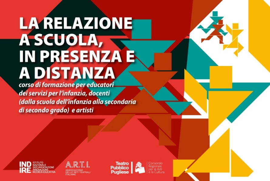 Al via la seconda fase del corso di formazione La relazione a scuola, in presenza e a distanza, nato dalla collaborazione tra INDIRE (Istituto Nazionale di Documentazione, Innovazione e Ricerca Educativa) e A.R.T.I. (Associazione delle Reti Teatrali Italiane) che vede la partecipazione di 8 circuiti regionali, tra cui il Teatro Pubblico Pugliese. L’obiettivo è avvicinare scuola e teatro. Si tratta del primo corso di formazione teatrale dedicato agli educatori riconosciuto dal Ministero dell’Istruzione e la Puglia è una delle regioni che ha accolto con più entusiasmo il progetto.